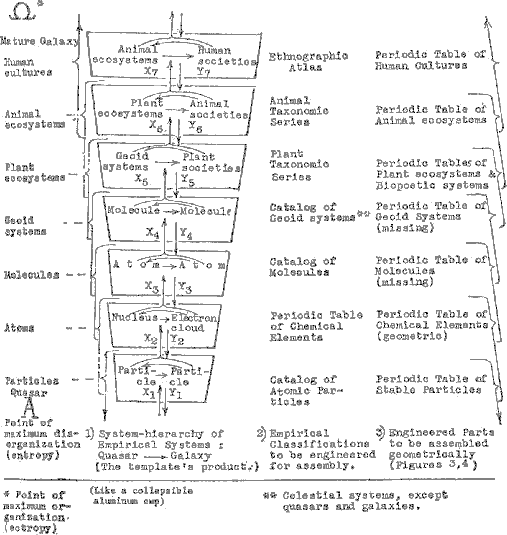 It follows logically from our definition of the System hierarchy that examination of any of the natural kingdoms or Major Strata should show the general structure which all of the natural kingdoms are postulated to have in common; and that all Periodic Tables should be equally good demonstration models. (This will some day, I believe, prove to be factually true.) Today, however, at this particular point in the history of science, there is one Major Stratum, that of atoms, whose Periodic Table has been worked out and verified incomparably further and better than any other. This Periodic Table, therefore, is the classification whose structure has been generalized.--First, let us consider this model in its traditional form; the form based on empirical data; then in its geometric form obtained by generalizing its structure Systems-Theoretically: the Periodic Coordinate System.