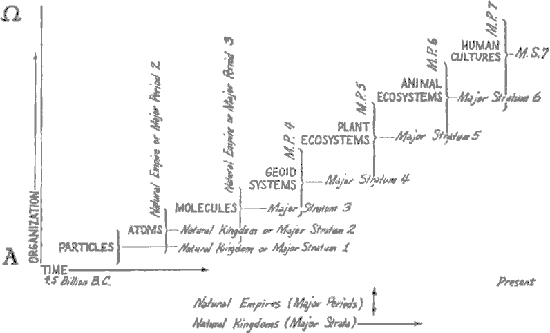 As in human empires, so also in natural empires, the highest Stratum confers its name upon the empire as a whole. (For instance, the Roman Empire.) The kingdom of atoms being here the controlling Major Stratum, we call the second Major Period the empire of atoms.9