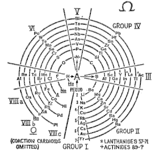 | FIGURE II-5b The Periodic Table of Chemical Elements mapped into the Periodic Coordinate system. Simplified: coaction cardioids omitted. (Shown in Figure 11.) |