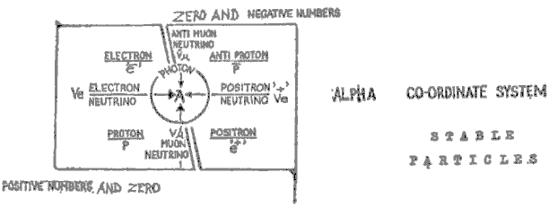 | FIGURE II-9 Alpha Coordinate System: zero, positive, and negative numbers. (Inverted Cartesian Coordinate System, Figure 6b). Stable Particles. |